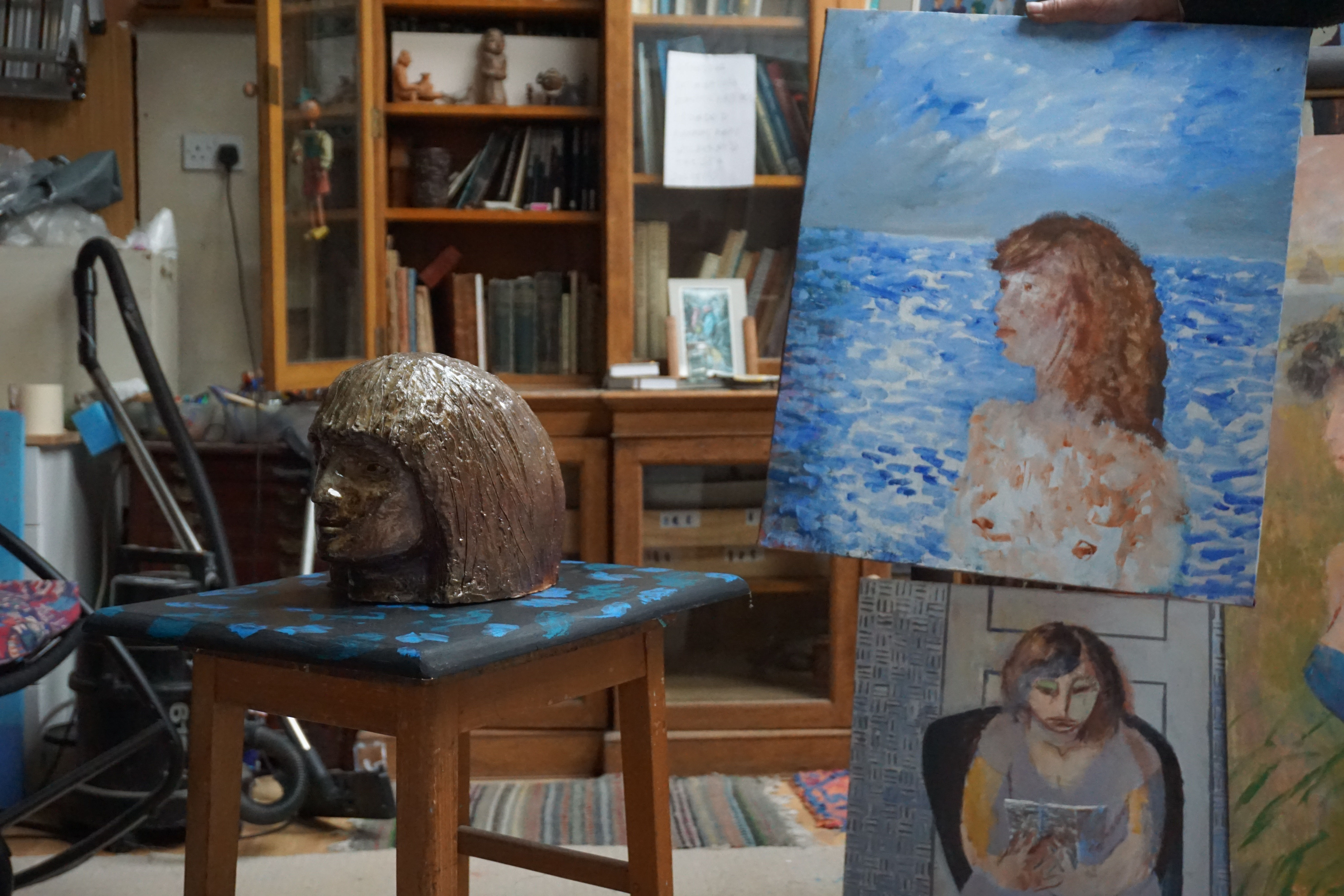 I find it difficult to answer this question. I don’t particularly differentiate between mediums. What I’m concerned about is making a picture, and I use a wide range of mediums. The image is the most important thing. I suppose that I grew up with the idea of watercolour painting, and all of my paintings have a watercolour mindset at the back of them. Colours and areas of paint can be adapted by glazing or scumbling over them. Sometimes I paint thinned, pure coloured oil paint into freshly laid thicker white, in a technique borrowed from the Pre-Raphaelites. For a long time I used acrylic, which lends itself well to glazing and scumbling, because it dries so quickly. At the moment I am probably using oil paint most of the time. I’m also trying to do some 3 dimensional work. I made some small bronzes, and more recently I’ve made heads out of stoneware.