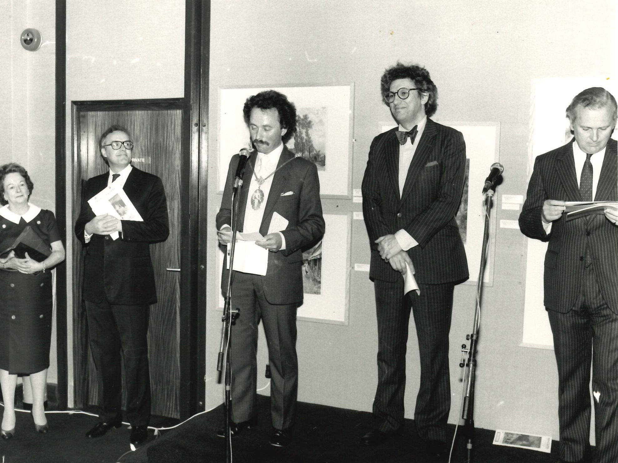 Bankside Gallery was opened by Her Majesty Queen Elizabeth II on 11 November 1980. Pictured here, Ernest Greenwood, President of the RWS 1976 - 1984, introduces Maurice Sheppard, Vice President at the time, to Her Majesty. On the right are Charles Knight and Roland Batchelor, Trustees of the RWS. Scroll down and take a look back in time...