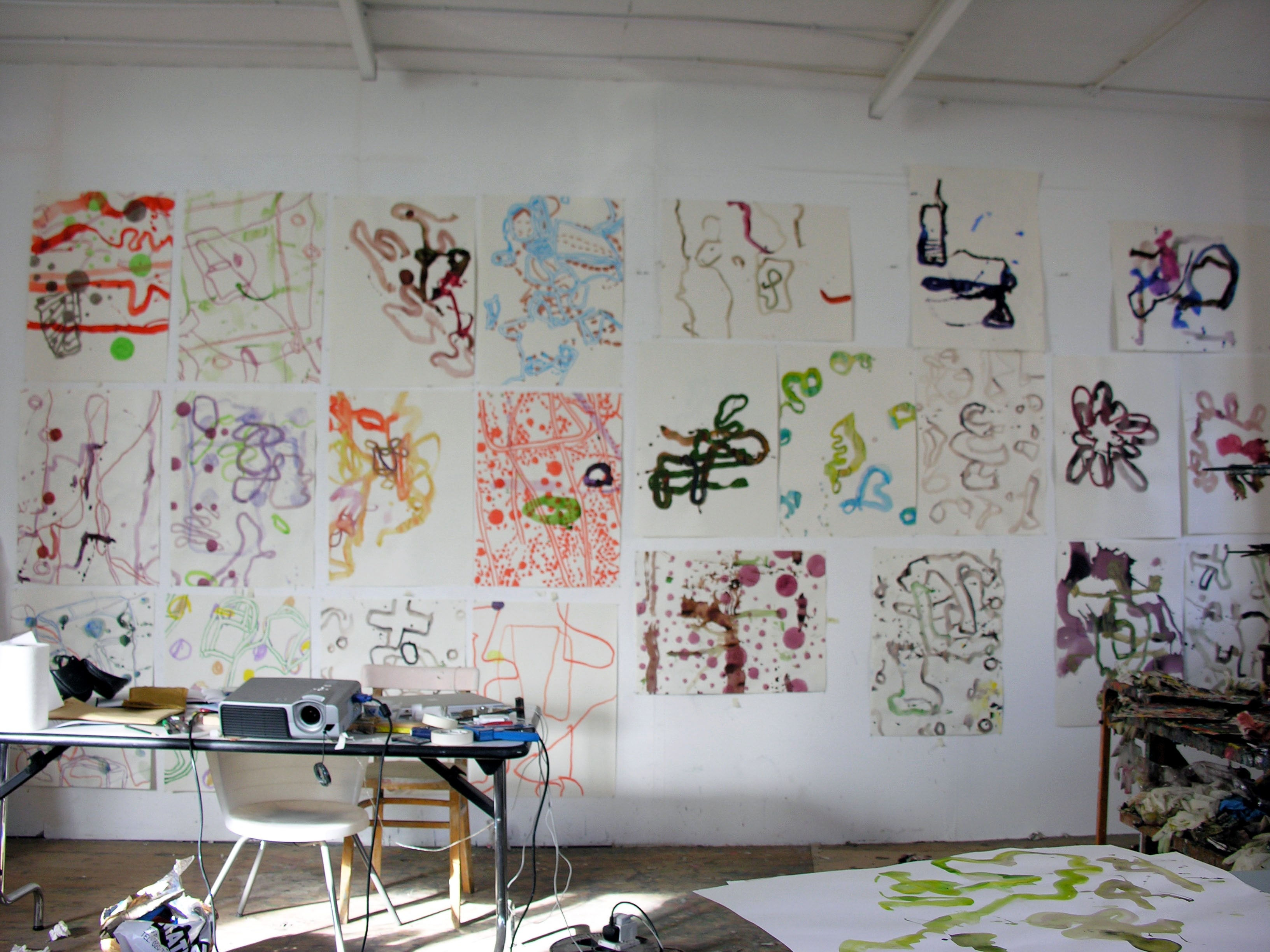 Wall of watercolour studies, 2008, in James' studio at Bridget Riley Studios