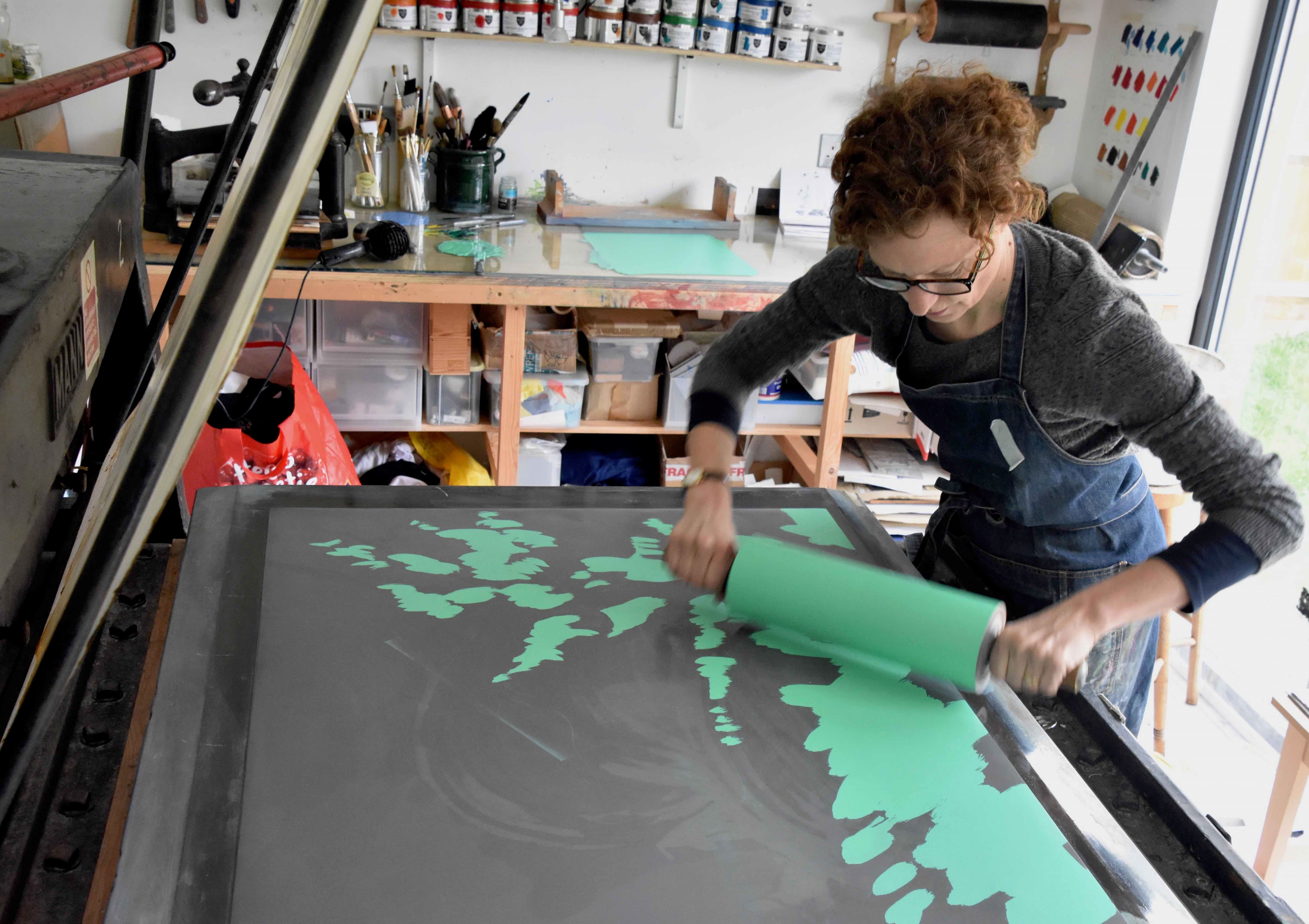 On an art working day, having packed off the family for school and work, and made sure Giacometti, our Wire Fox Terrier has had a walk, I go to the shed at the end of the garden. This is where I’ll spend whole days looking over my sketches, redrawing, planning, prepping and printing. Some days I’ll be using a huge Mann Direct press printing large lithographs; other times all I’ll have to show for a day’s work are a mass of colour swatches that aren’t right. Regardless of the outcome, time flies.